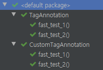 만약 @Tag("fast"), @Tag("slow") 어노테이션을 추후 테스트 케이스 작성할 때도 계속 사용한다면 어노테이션을 만들어서 사용하는 것도 좋습니다. 이유는 오타 방지할 수 있기 때문입니다.