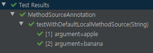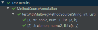 테스트 메소드의 인자가 2개 이상인 경우 arguments를 사용해서 리턴해줘야합니다.