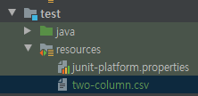 테스트를 위해 test/resources 경로에 two-column.csv 파일을 생성합니다.