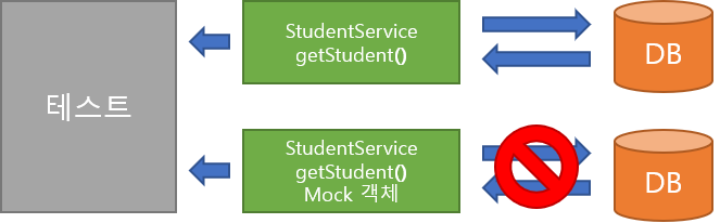 그래서 Student를 DB에서 읽어오지 않고 이를 가짜 객체 즉, mock으로 만들어서 DB에 있는 테이블 접근을 최소화할 수 있습니다.