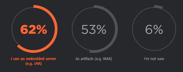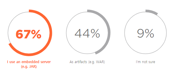 대부분 WAR보단 JAR로 배포하고 있네요. 점점 JAR 사용률이 높아지고 WAR는 낮아지는 걸 볼 수 있습니다.