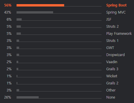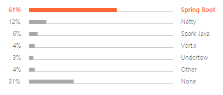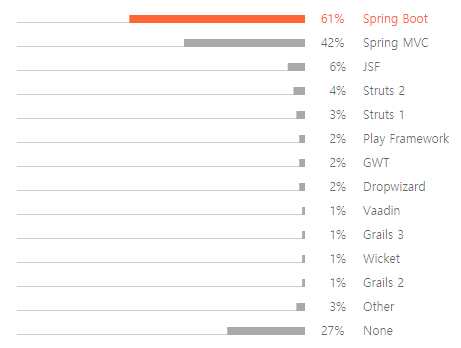 역시 대세인 Spring Boot의 사용률이 2%가 올르고 Netty가 2%가 내려갔네요.