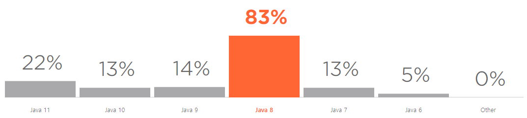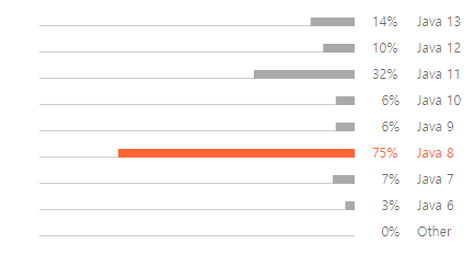 Java 8이 사용률이 좀 떨어지긴 했어도 2014년 3월 18일에 출시돼서 벌써 7년이라는 세월이 지났는데도 아직도 인기가 많네요.