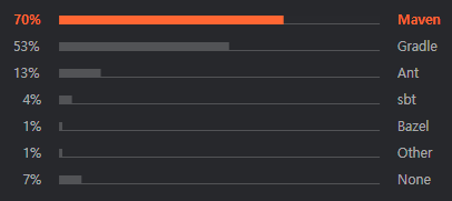 Maven이 으외로 1%가 올랐네요. 저는 Maven이 Gradle보다 불편해서 잘 안쓰고 있는데 아닌가보네요.
