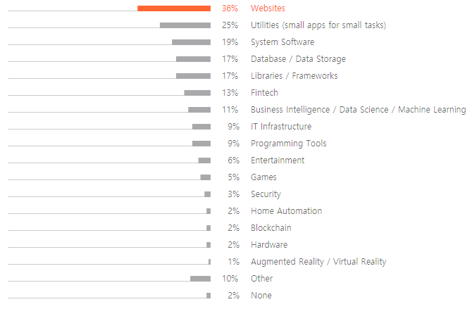 역시나 웹 사이트를 만드는데 자바를 가장 많이 사용하고 있네요.