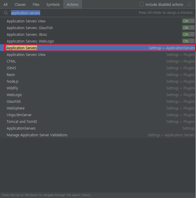 1. Ctrl + Alt + a -> application servers 검색 -> Application Servers 클릭