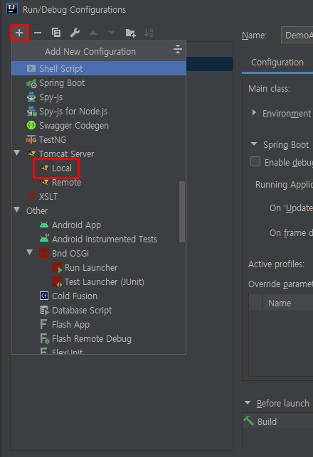 6. "+" 클릭 -> Tomcat Server - Local 클릭
