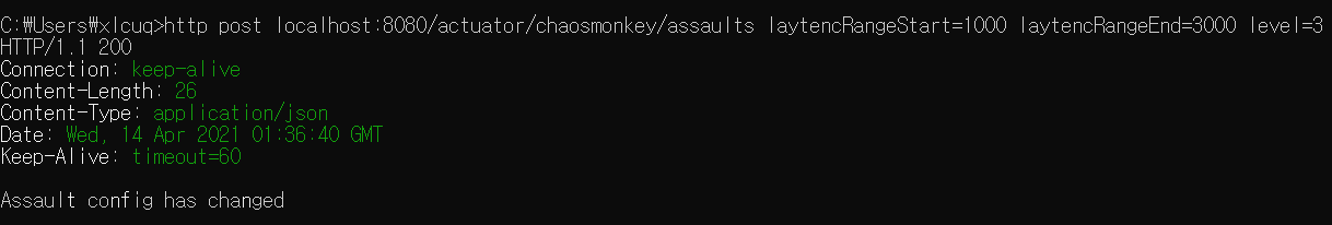 http post localhost:8080/actuator/chaosmonkey/assaults latencyActive=true