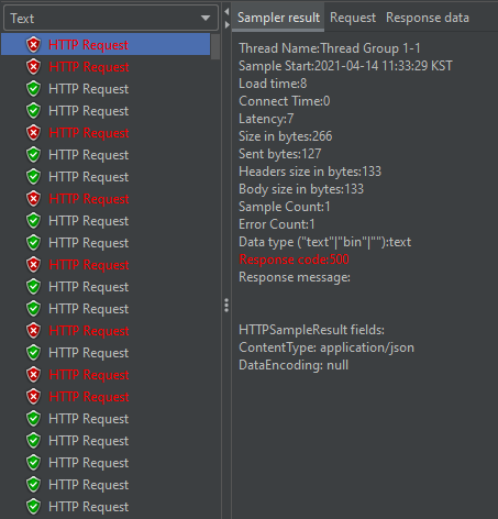 이제 설정을 다 끝냈으니 테스트를 해보겠습니다. JMeter로 이전 포스팅에 했던 설정을 그대로 실행해보겠습니다.