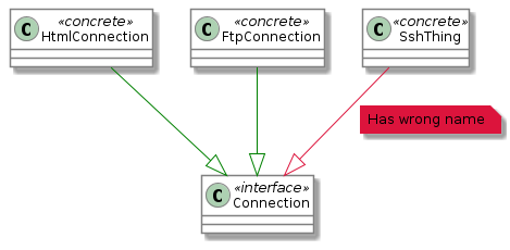SshThing은 Connection의 구현체면서 이름이 Connection으로 끝나지 않기 때문에 테스트가 실패합니다.