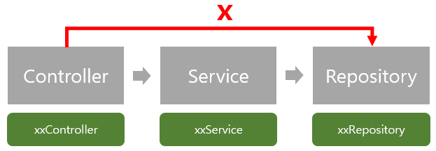 ① Controller는 Service만 의존해야한다. Repsitory는 의존하면 안 된다. << Controller가 Repository를 의존하고 있으니 실패