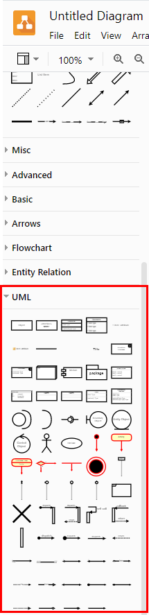 접속해서 왼쪽 아래로 쭉 내리면 UML 탭이 있습니다. 앞으론 저기에 있는 것들로 클래스 다이어그램을 그릴려고 합니다.