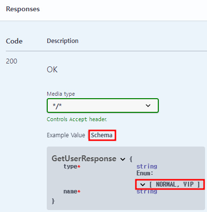 swagger에서 request, response에 enum 값은 별도 설정을 안 하면 enum의 name이 나온다.