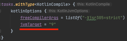 gradle을 보니 KotlinCompile 버전을 9로 해놨다.