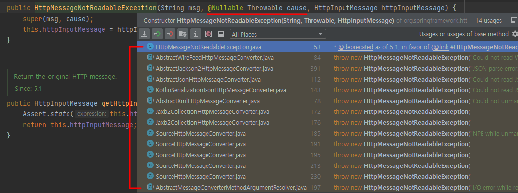 자세히 보면 MissingKotlinParameterException을 HttpMessageNotReadableException에서 발생키기고 있다.