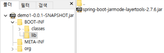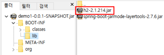 h2를 runtimeOnly로 추가한 후에 bootJar로 빼서 봤더니 lib에 추가된 걸 볼 수 있다.