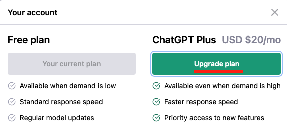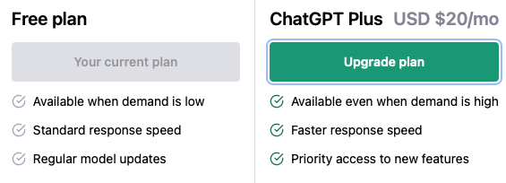 ChatGPT 유료 버전으로 월 20$를 내면 사용할 수 있다.