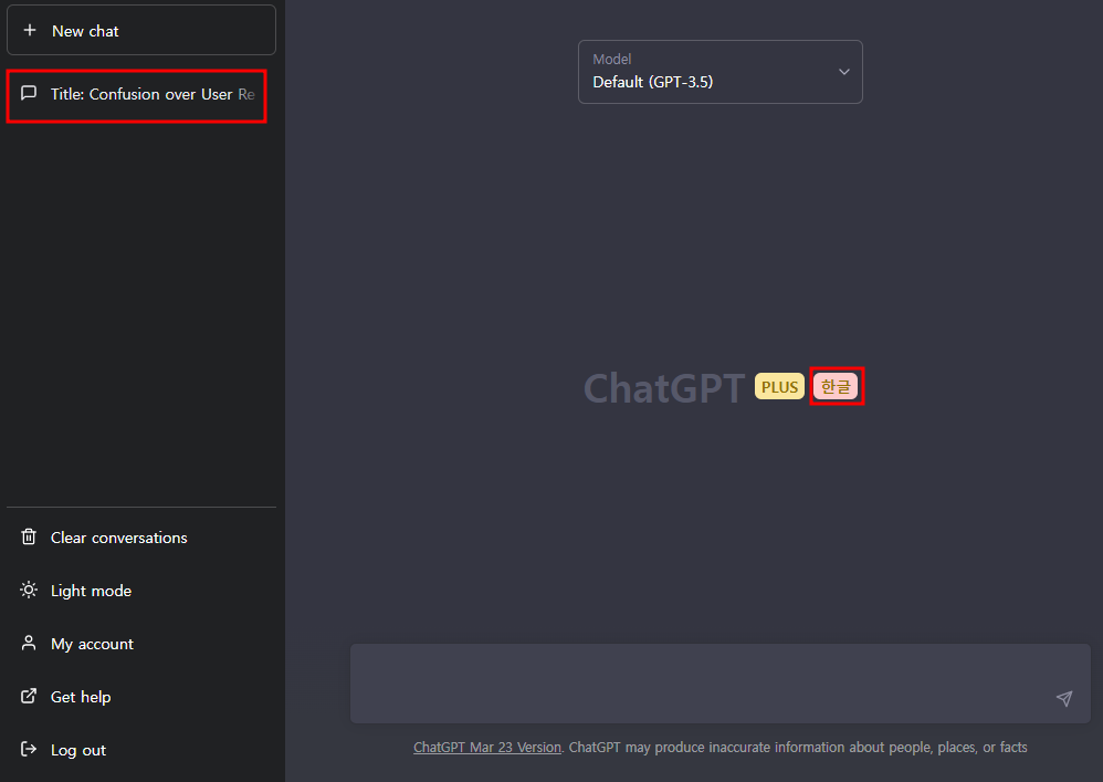 저거 누르면 쿠팡으로 새창이 뜨고 원래 사이트로 아래 화면처럼 ChatGPT PLUS옆에 한글이라고 뜬금없이 생겼다.