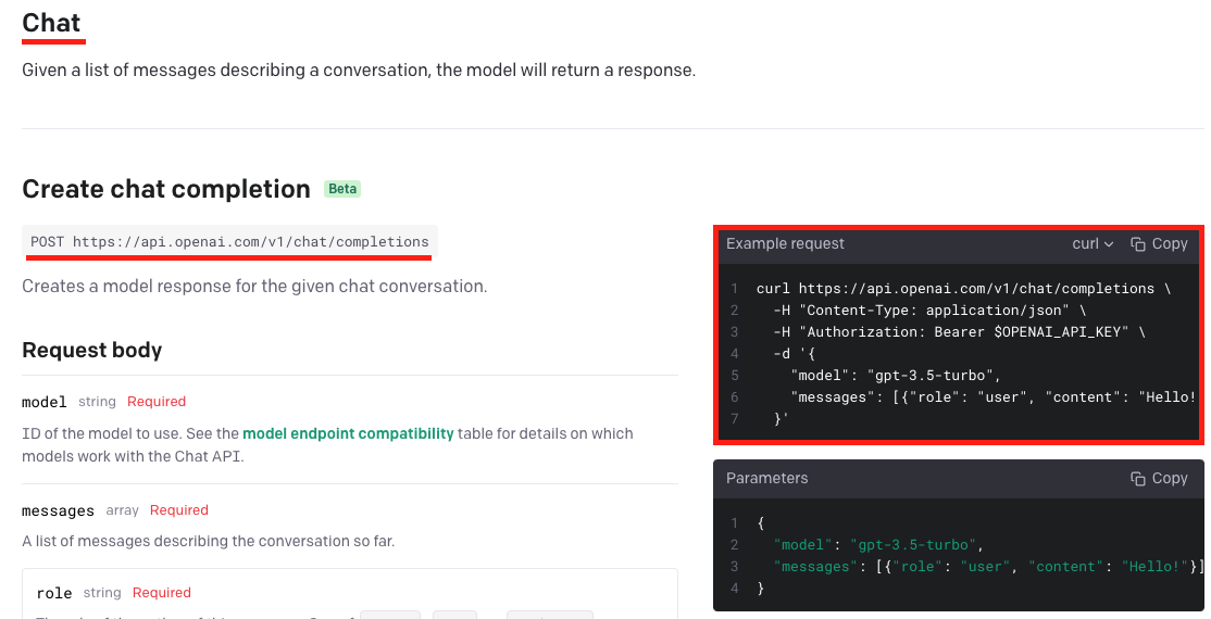 POST https://api.openai.com/v1/chat/completions를 호출하면 된다.