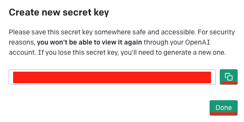 secret key가 만들어졌다. 오른쪽에 복사 버튼 클릭하고 Done 클릭