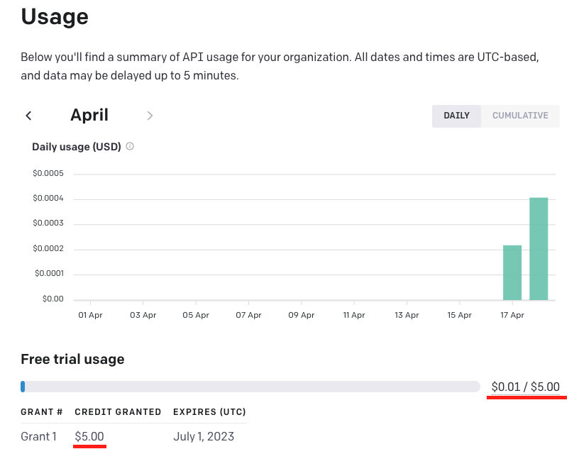 내가 테스트해보니 한번 api 콜할 때 토큰 수가 1000개가 안 넘어도 0.002$로 계산한다.