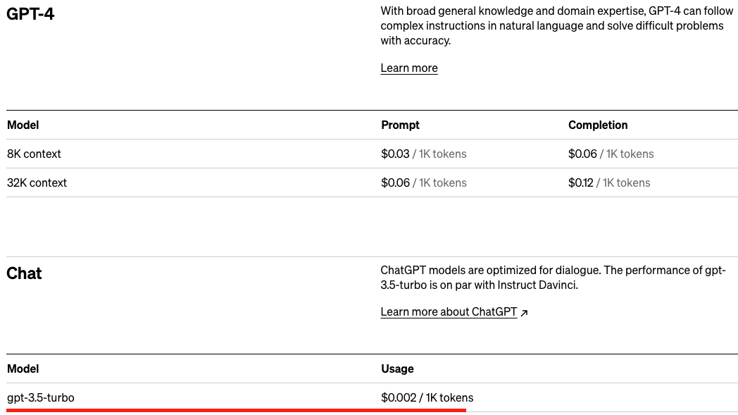 GPT-4와 GPT-3.5 모델의 사용료가 다르다.