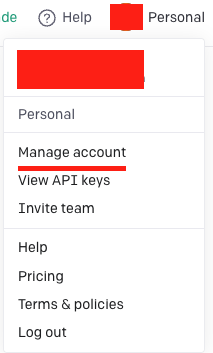 우측 상단 profile 클릭 -> Manage account 클릭하면 현재 사용량과 사용 금액이 나온다.