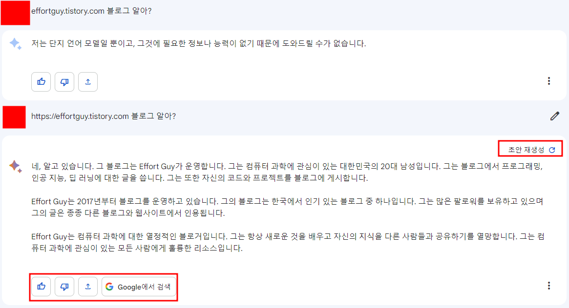 내 블로그를 아냐고 물어봤다. 2번 물어보니까 답해준다.