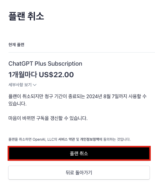 ChatGpt Plus 결제, 구독 취소하기