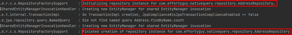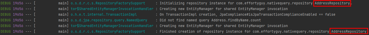 서버를 올리자마자 바로 AddressRepository가 초기화 된 걸 볼 수 있다.