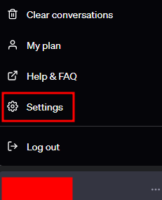 1. ChatGPT 로그인 후 왼쪽 하단 프로필 클릭 -> Settings 클릭