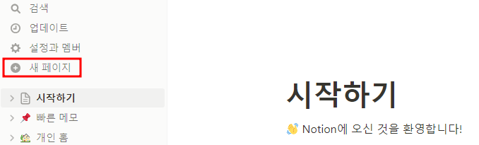 2. 왼쪽 중단에 "새 페이지" 클릭