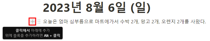 문장에 마우스를 가지고 가면 + 버튼이 나온다.