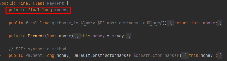 아래 Money 클래스를 사용하는 Payment 클래스를 자바 코드로 변경해보겠다.