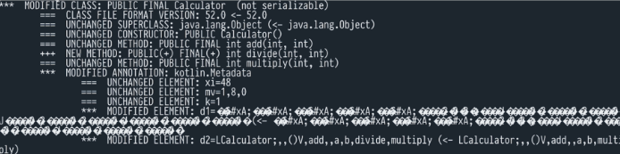 이것은 @Metadata 주석의 변경으로, 크게 흥미로운 것은 아닙니다. 그러나 japicmp는 JVM 언어에 중립적이며 보이는 모든 것을 보고해야 합니다.