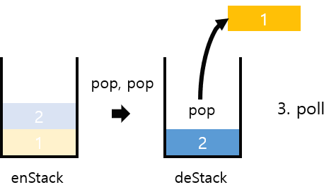 * poll 요청왔을 때 enStack에 있는 데이터 모두를 pop해서 deStack으로 모두 넘겨줍니다.
