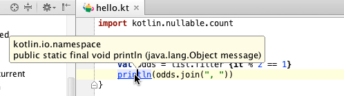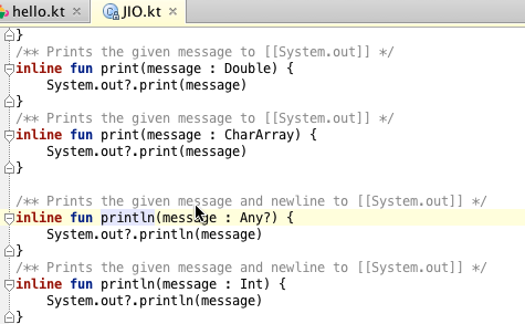 구현 측면에서 확장 함수는 "좋은 오래된" Java의 Collections.*와 같은 정적 유틸리티 함수이지만, "receiver.function()" 호출 구문과 IDE의 도움을 받아 훨씬 나아집니다: 코드 완성이 API를 찾아보고 배우는 데 도움이 됩니다 (확장이 일반 클래스 멤버인 것처럼).