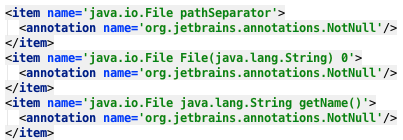 간단히 말해서 작동 원리는 다음과 같습니다: 라이브러리를 jar(또는 여러 jar)로 갖고 있고, KAnnotator에게 이러한 jar에 대한 주석을 유추하도록 지시합니다. 그런 다음 .xml 파일들을 받습니다. 이 파일들에는 메서드와 필드에 대한 주석이 포함되어 있습니다.