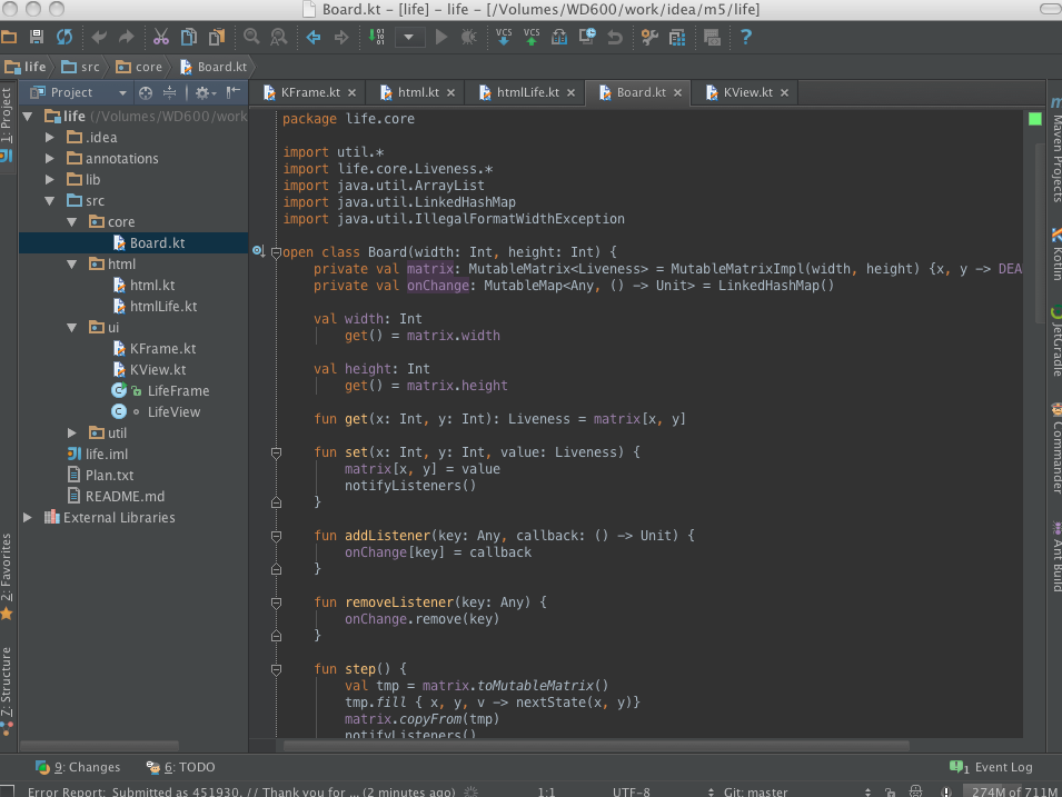 Kotlin이 오픈 소스 프로젝트로 시작된 지 이제 두 주 후면 일년이 됩니다. 이 기간 동안 많은 노력과 커뮤니티의 큰 도움으로 164개의 풀 리퀘스트를 받았습니다, 즉 대략 이틀에 하나씩의 기여가 이루어진 것입니다. 오늘, 우리는 또 다른 단계를 밟고 Kotlin M5를 출시합니다. 이 블로그 글은 이번 릴리스에서 소개된 변경 사항을 다룹니다.
