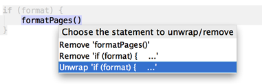 IDEA의 다른 언어 지원과 마찬가지로, 이제 코드 | Unwrap/Remove Refactoring을 통해 둘러싼 문장 안에서 표현식을 언랩하거나 제거할 수 있습니다.