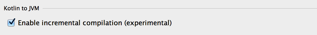 Kotlin의 목표는 항상 Java만큼 빠르게 동작하는 것이었으며, 아직 그 목표에 도달하지는 못했지만, 우리는 큰 한 걸음을 내딛었습니다. 이것은 증분 빌드를 제공하는 것입니다. IntelliJ IDEA에서는 Kotlin 컴파일러 옵션 아래의 확인란을 통해 이 옵션을 토글할 수 있습니다: