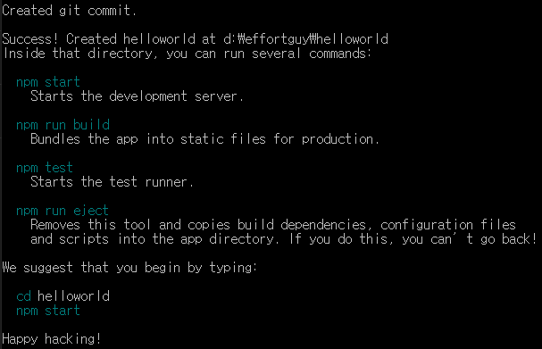 명령어를 실행하면 라이브러리에 대한 정보가 위에 쭈르륵 나오는데 무시해주시고 좀 기다리면 아래와 같이 success가 나옵니다.