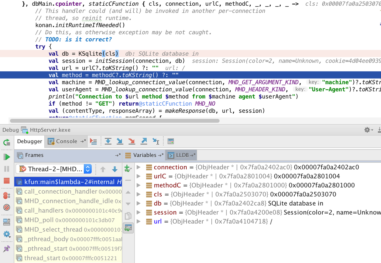 우리는 Kotlin으로 작업하는 IntelliJ IDEA가 있지만, Kotlin/Native은 Clang 및 LLDB 지원과 같은 네이티브 세계의 기술과 통합됩니다. 그래서 JetBrains의 Kotlin/Native 선택은 C 및 C++용 IDE인 CLion입니다.
