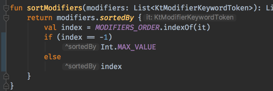 새 버전의 플러그인은 람다의 암시적 매개변수 및 람다에서 반환된 값에 대한 편집기 내 인라인 힌트를 추가합니다. 다음 스크린샷은 두 기능이 어떻게 작동하는지를 보여줍니다.