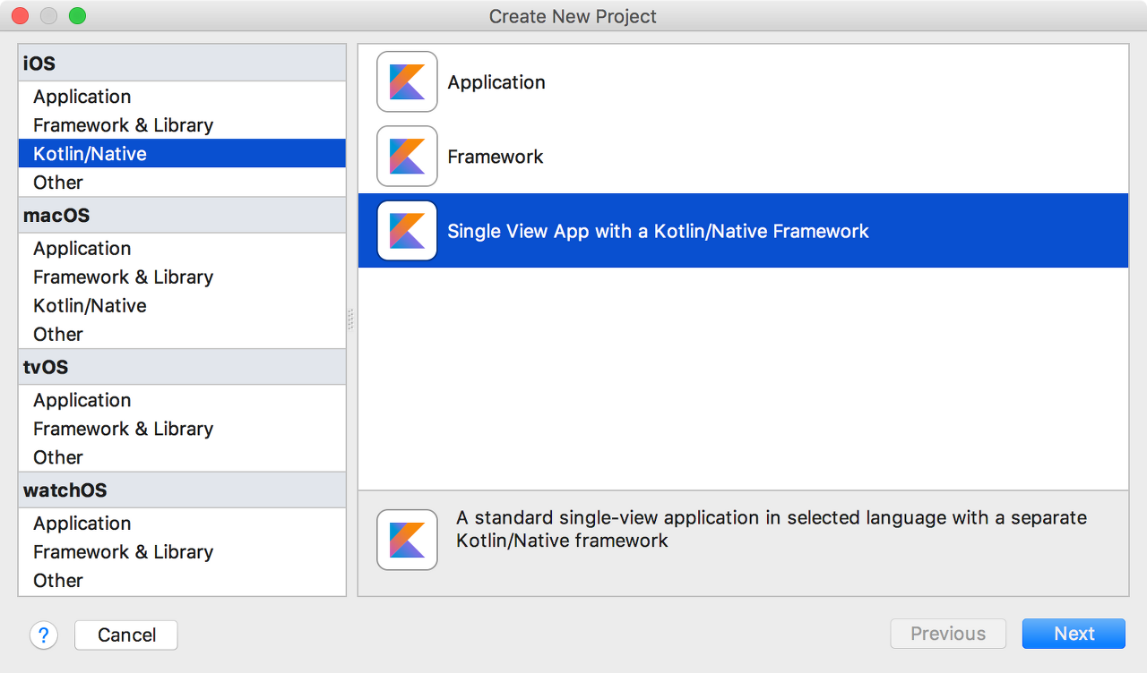 Kotlin/Native는 Gradle을 빌드 도구로 사용합니다. Xcode에서 Kotlin/Native 코드를 컴파일할 수 있도록 프로젝트에 Gradle을 사용하여 Kotlin/Native 코드 빌드를 호출하는 Run Script 단계를 추가해야 합니다. 프로젝트를 처음부터 이렇게 설정하는 것은 약간 복잡할 수 있으므로 Kotlin/Native 플러그인은 iOS 및 macOS 템플릿 몇 가지와 함께 제공됩니다.