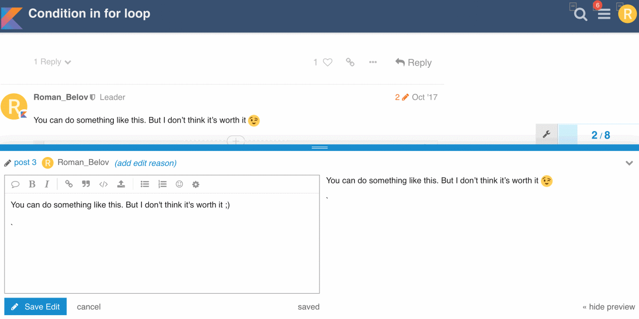 Kotlin 포럼에서는 markdown 구문으로 run-kotlin 언어를 사용하여 질문에 답할 수 있습니다. 완전한 정확성이 보장됩니다.