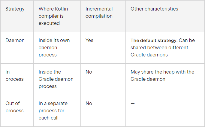 - org.jetbrains.kotlin.gradle.tasks.KotlinCompilerExecutionStrategy.DAEMON (기본값)