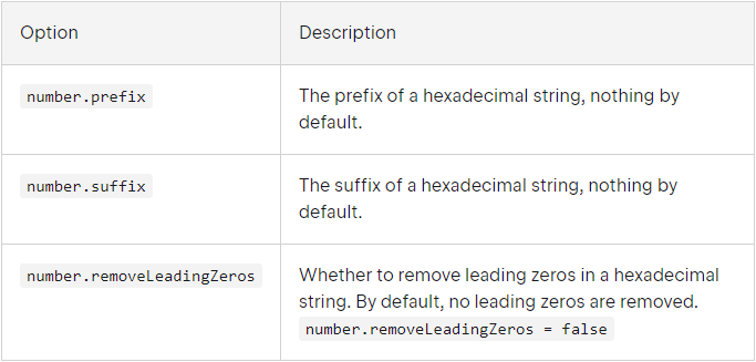 ByteArray를 다룰 때 다음과 같은 프로퍼티로 구성할 수 있는 옵션이 있습니다: