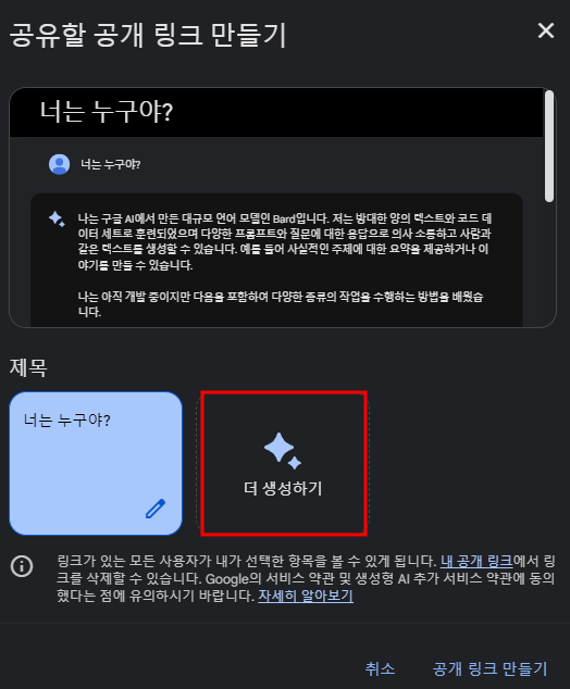 공유할 공개 링크 만들기 창이 나온다.