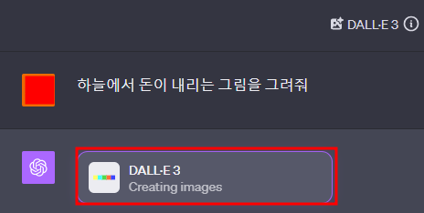 DALL·E 3 Create images라고 나온 후 30초 정도 있다가 생성된 이지미를 보여준다.